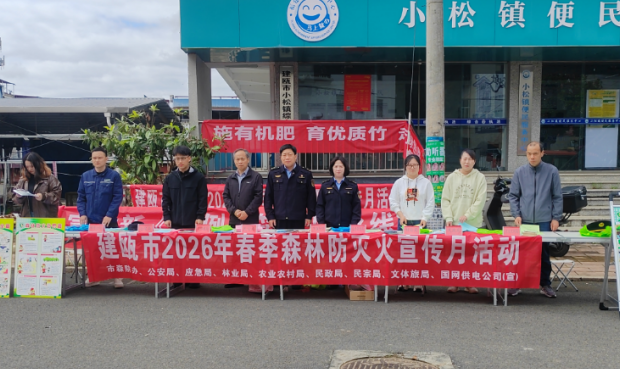 东南网3月26日讯(通讯员 吴雪清 文/图)为切实筑牢春季森林防火安全防线,营造“全民防火、群防群控”氛围,3月25日,建瓯市森防指组织应急、公安、林业、文体旅、民政、民宗、国网建瓯市供电公司等单位,在小松镇开展2026年春季森林防灭火宣传月活动。