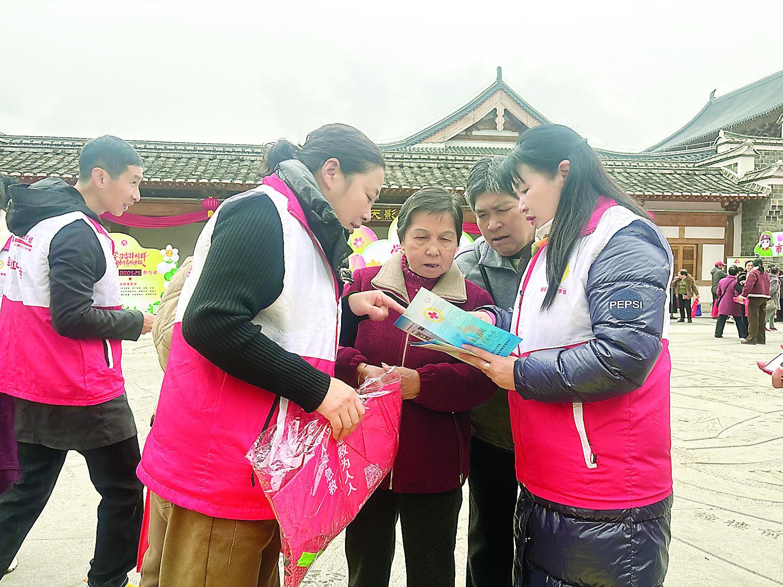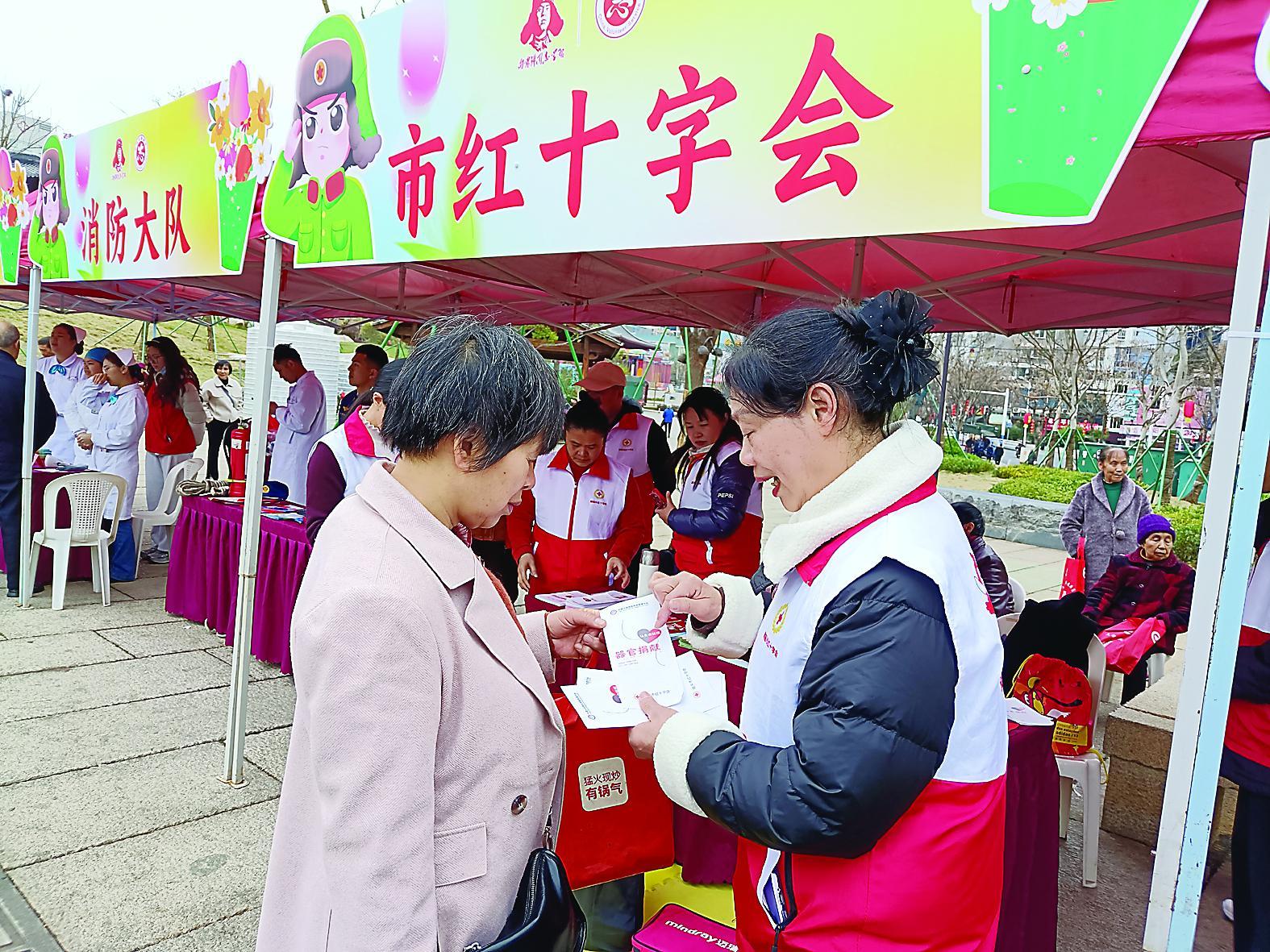 志愿者们向群众介绍器官捐献相关知识