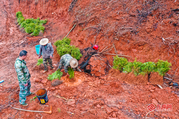 东南网4月2日讯(通讯员 朱城铖)春日融融,万物勃发,3月30日,在顺昌县埔上镇大布村的山林间,福建省顺昌路马头国有林场(以下简称路马头国有林场)的工作人员正抢抓春日造林黄金期,挥锹培土、扶正苗木、踩实根部,一棵棵杉木三代半优质苗迎着春风扎根沃土,错落有致地挺立在山间。