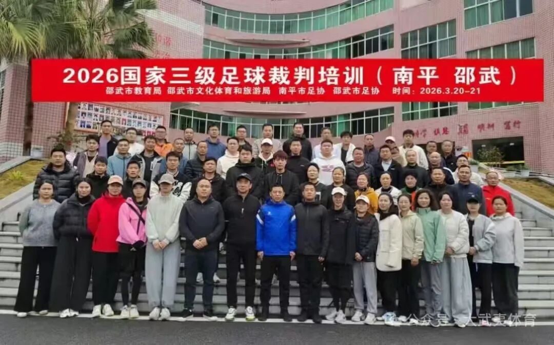 邵武市现有足球场地26块,每万人足球场地数量达0.97块。2026年已争取省级为民办实事项目1个多功能足球运动场落地。定期开展足球裁判员、教练员专项培训,2026年3月已组织开展国家三级足球裁判员培训1期,培养持证裁判60余名。