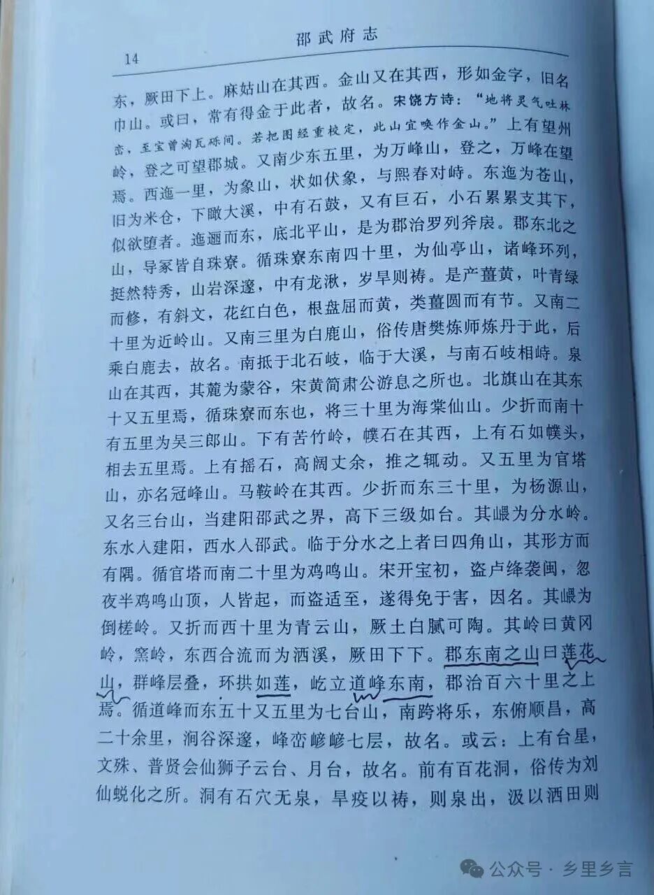 (明)陈让编《邵武府志》:“郡东南之山曰莲花山,群峰层叠,环拱如莲……”