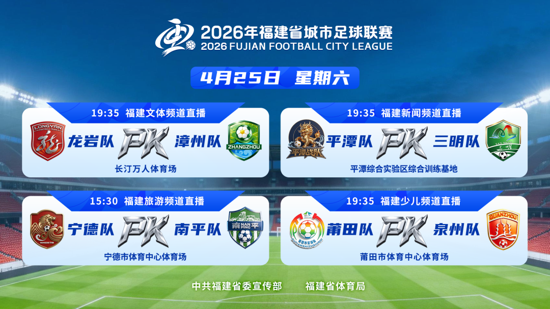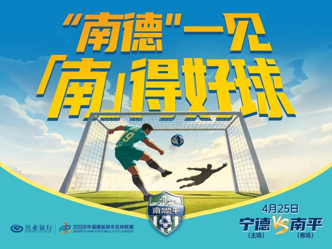 2026年 “兴业银行” 福建省城市足球联赛(简称 “闽超”)即将开赛,南平队首战将在4月25日客场对阵宁德队。为预热这场体育盛会,我市推出十张创意海报,以接地气的标语、鲜活亮眼的设计,提前点燃市民观赛热情,让大家沉浸式感受足球运动的激情与魅力。