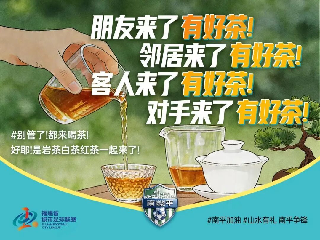茶叶泡开,球门踢开。每一片舒展的茶叶,都藏着胜利的期许;每一脚凌厉的射门,都带着南平的韧劲。