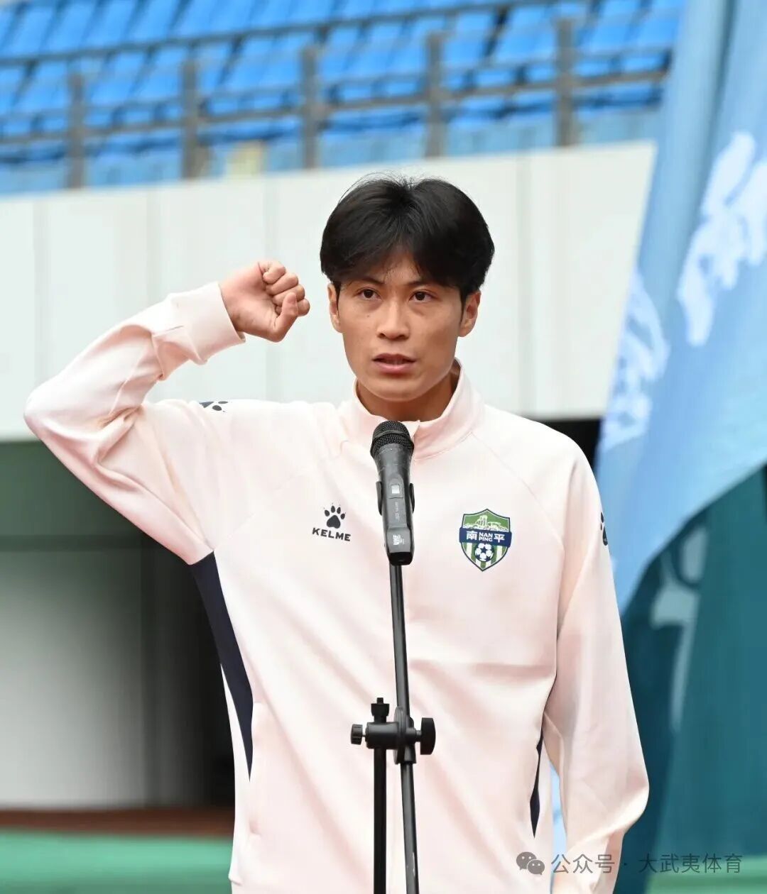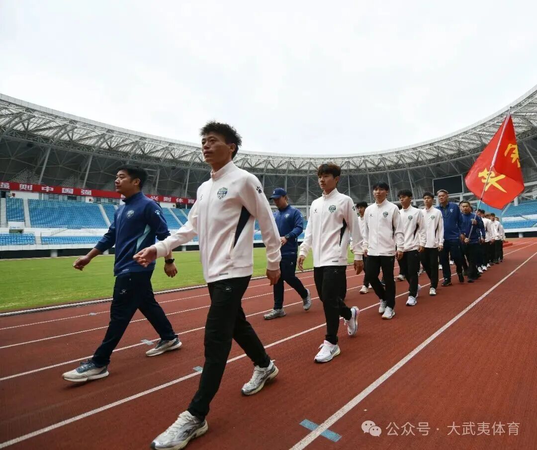 出征仪式现场,鼓声阵阵、激情澎湃,南平队全体队员在主教练带领下整齐列队、亮相绿茵,大家精神饱满、蓄势待发。运动员代表宣誓后,球队领队郑重接过队旗,鲜艳的旗帜迎风招展,标志着南平队正式披甲征战赛场。