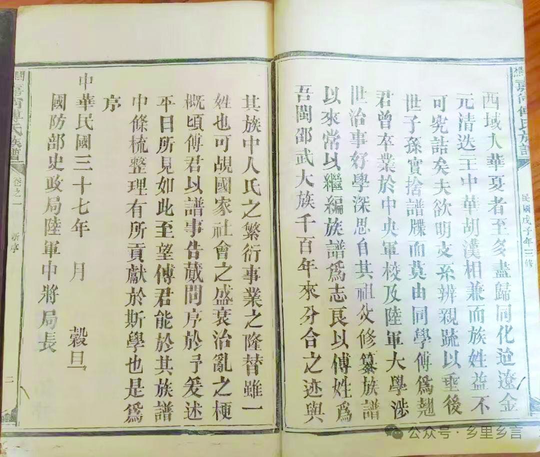 在这篇序言中,吴石开篇即纵论三代以降宗法谱牒之流变,笔力雄健,史识渊博。他亲切地称傅为翘为“同学傅为翘君”,盛赞其“涉世治事,好学深思”。这八个字,既是对傅为翘人品的精准概括,又对加尚傅氏数百年家风给予凝练表达。正是这种“好学深思”的文脉传承与“涉世治事”的经世精神,滋养了傅为翘,使他从加尚村的山间小路走向广阔天地,成为吴石信赖的左膀右臂。序末,吴石落款“国防部史政局陆军中将局长古闽吴石”,字迹端严,气韵沉雄。这一纸序言,见证了傅为翘与吴石超越一般同僚的深厚情谊,更成为加尚村傅氏族谱中最珍贵的一页墨宝。